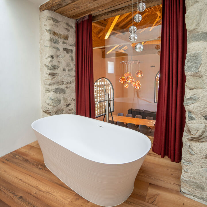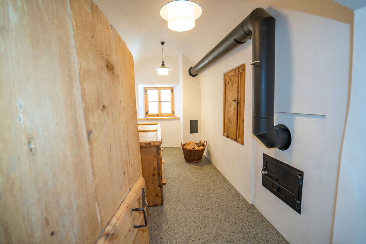 Das Engadinerhaus wurde stückweise entrümpelt und von den Einbauten aus den 80er Jahren befreit und bis auf die historische Bausubstanz zurückgebaut. Die neue Nutzung als Familienhaus forderte einen feinfühligen architektonischen Eingriff.
