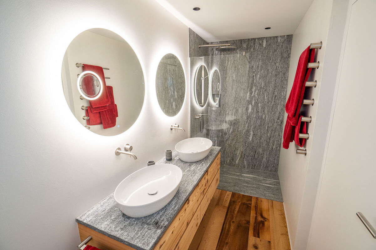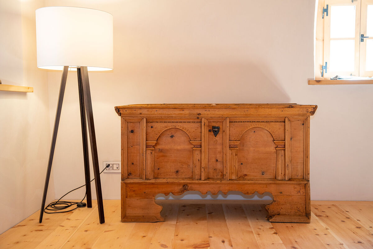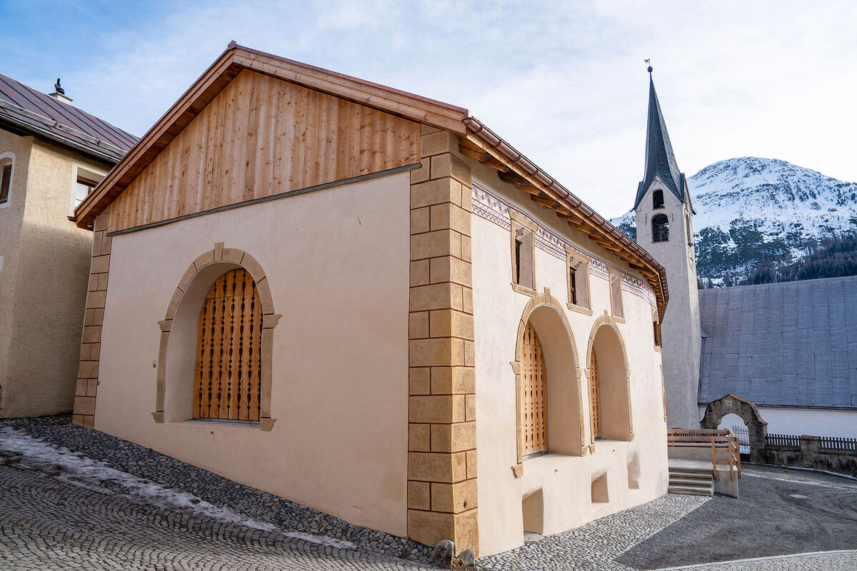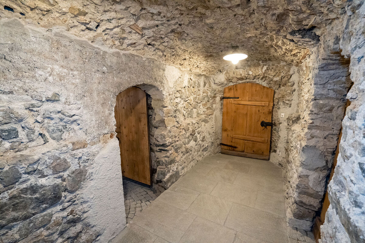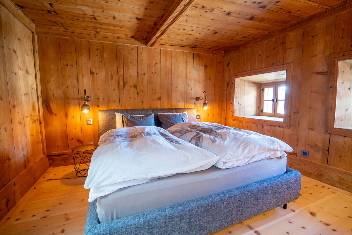 Die Raumstruktur wurde nur durch wenige gezielte und lesbare Eingriffe angepasst, so dass die Nutzung und die Raumbedürfnisse der Familie entsprochen werden können. So bleibt der Sulér offen als Eingangshalle und ist auch als Zwischenraum von Wohnraum und Aussenraum verstanden. Die Raumfolge (Stüva - Chadafö - Chaminada) wurde sorgfältig originalgetreu renoviert, so bleiben die historischen Kammern unseren Nachkommen original erhalten. Der Tablà (Heustall), das Herz der Anlage, wird zum Hauptraum. Von hier wird der Palantschin (Obergeschoss) mit den drei alten Schlafkammern erschlossen. Neu werden in den Zimmern zwei Nasszellen ergänzt, mit Bezug zum Stall und zum Himmel. Das Dach wird zum Kaltdach, so erhält die Liegenschaft auch ihre Lunge zurück.