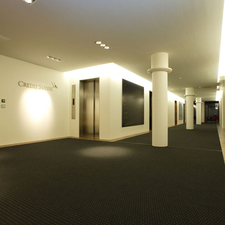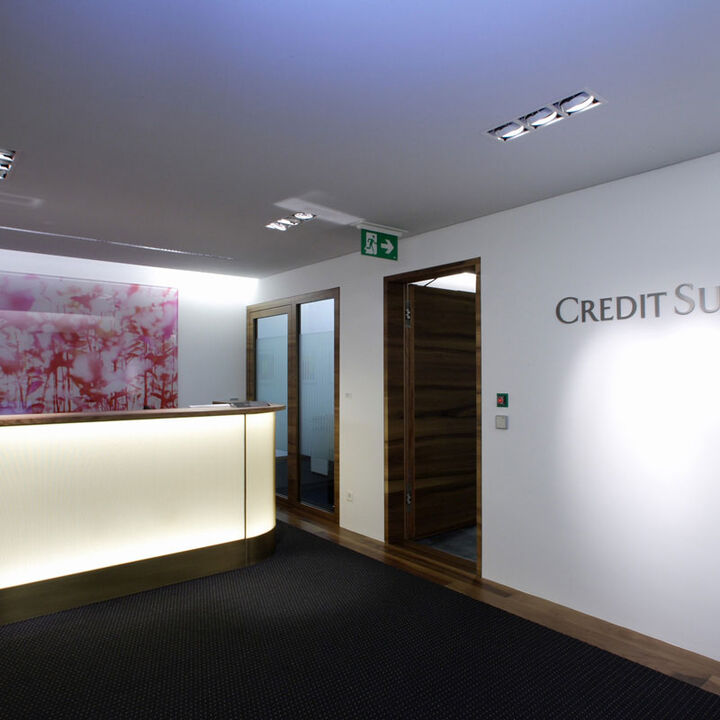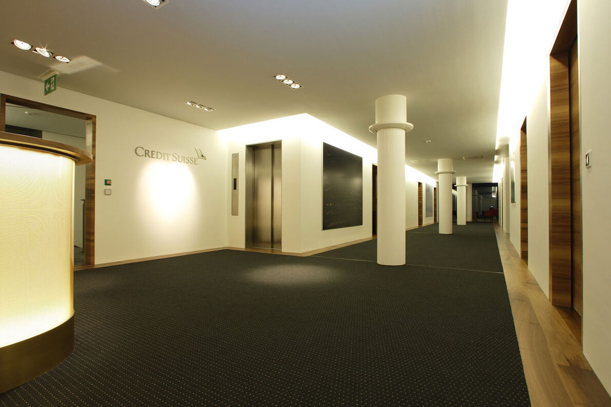 Die Credit Suisse St. Moritz mitten in der Fussgängerzone wurde 2007 neu erstellt. Die Vorgabe war die Umsetzung der schweizweiten Corporate Identity unter der Prämisse, dass sich die Filiale St. Moritz durch eine regionale Einzigartigkeit auszeichnet.