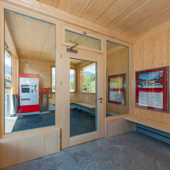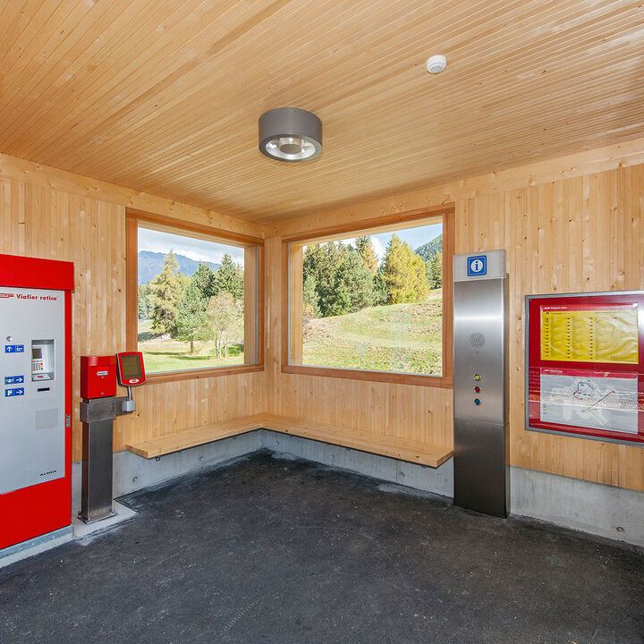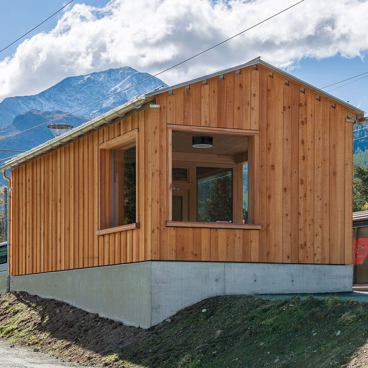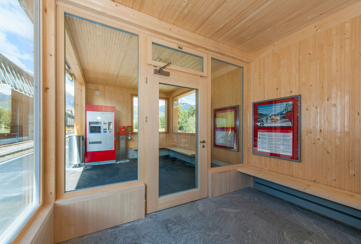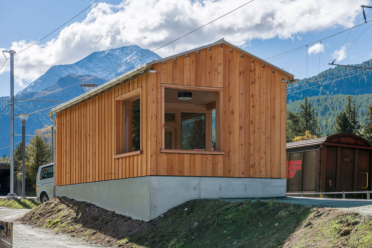 Der Bahnhof Punt Muragl wurde 2016 neu erstellt, da der bestehende Bau den technischen Anforderungen der RhB nicht mehr genügte. Der Holzbau wurde mit einem selbsttragend stehenden Brettstapel errichtet.