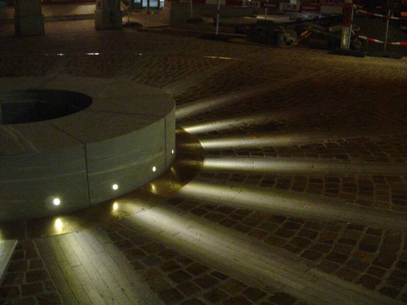 Mit der neuen Gestaltung des Platzes erhält der Ort eine Bedeutung und lädt zum Verweilen ein. Die 20 Strahlen der Sonne sind mit stehenden Granitplatten in die Pflästerung eingelassen und mit einem Messingring begrenzt. Die ganze Sonne ist als Kugelsegment im Boden leicht spürbar. Die eigentliche Sonne dient als Sockel für temporäre Kunstausstellungen oder als Sitzfläche zum Verweilen. Die gezielte Beleuchtung der Strahlen unterstützt nachts die Idee der immer strahlenden St. Moritzer-Sonne.