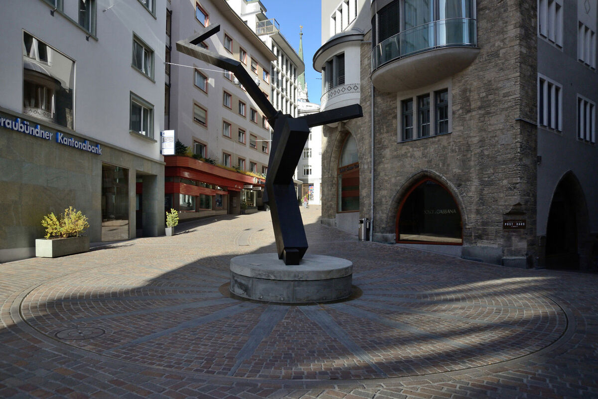 Die Fussgängerzone gehört bereits heute zu St. Moritz wie die St. Moritzer-Sonne. Am Sonnenplatz kann der Fussgänger die autofreie Zone auf fünf verschiedenen Wegen verlassen, deswegen ist der Platz ein wichtiger Zugangsort zum Zentrum. Lange Zeit wurde der Sonnenplatz dem Verkehr geopfert und jetzt wieder als Begegnungsort entdeckt.