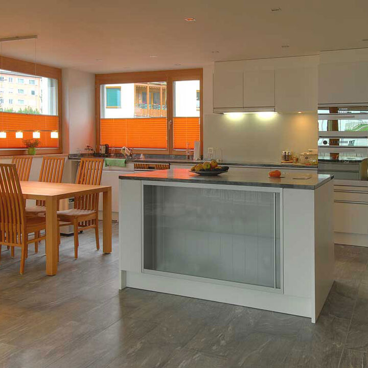 Die Geschosswohnungen wurden statisch und haustechnisch so geplant, dass die Wohnungen innerhalb der Grundfläche individuell gestaltet werden konnten. Lediglich die Lage der Nasszellen war fix vorgegeben. Sämtliche zwölf Wohnungen verfügen über eine Aussicht in alle vier Himmelsrichtungen. Die zwölf Wohnungen präsentieren sich im Grundriss sowie im Ausbau ganz unterschiedlich.