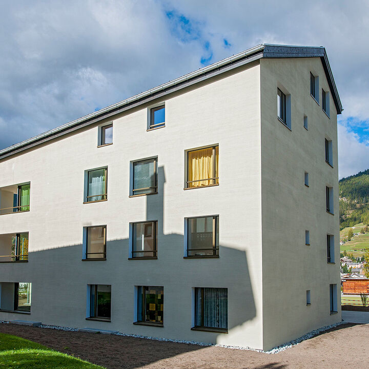 Die zwei alten, aus den 60er Jahren stammenden, Wohnhäuser in La Punt Chamues-ch wurden saniert und mit zwei neuen Wohnhäusern für die einheimische Bevölkerung ergänzt.
