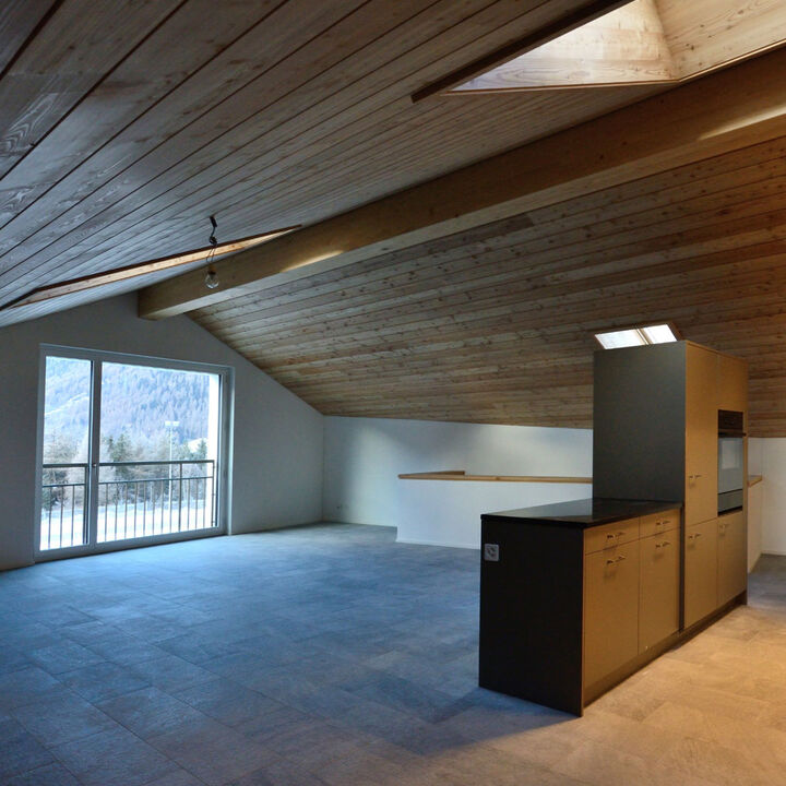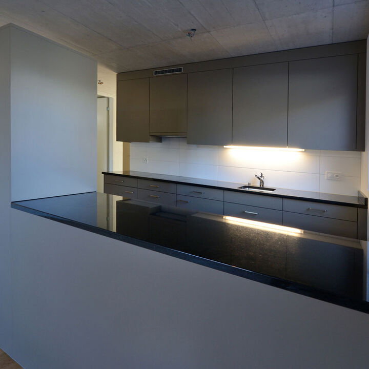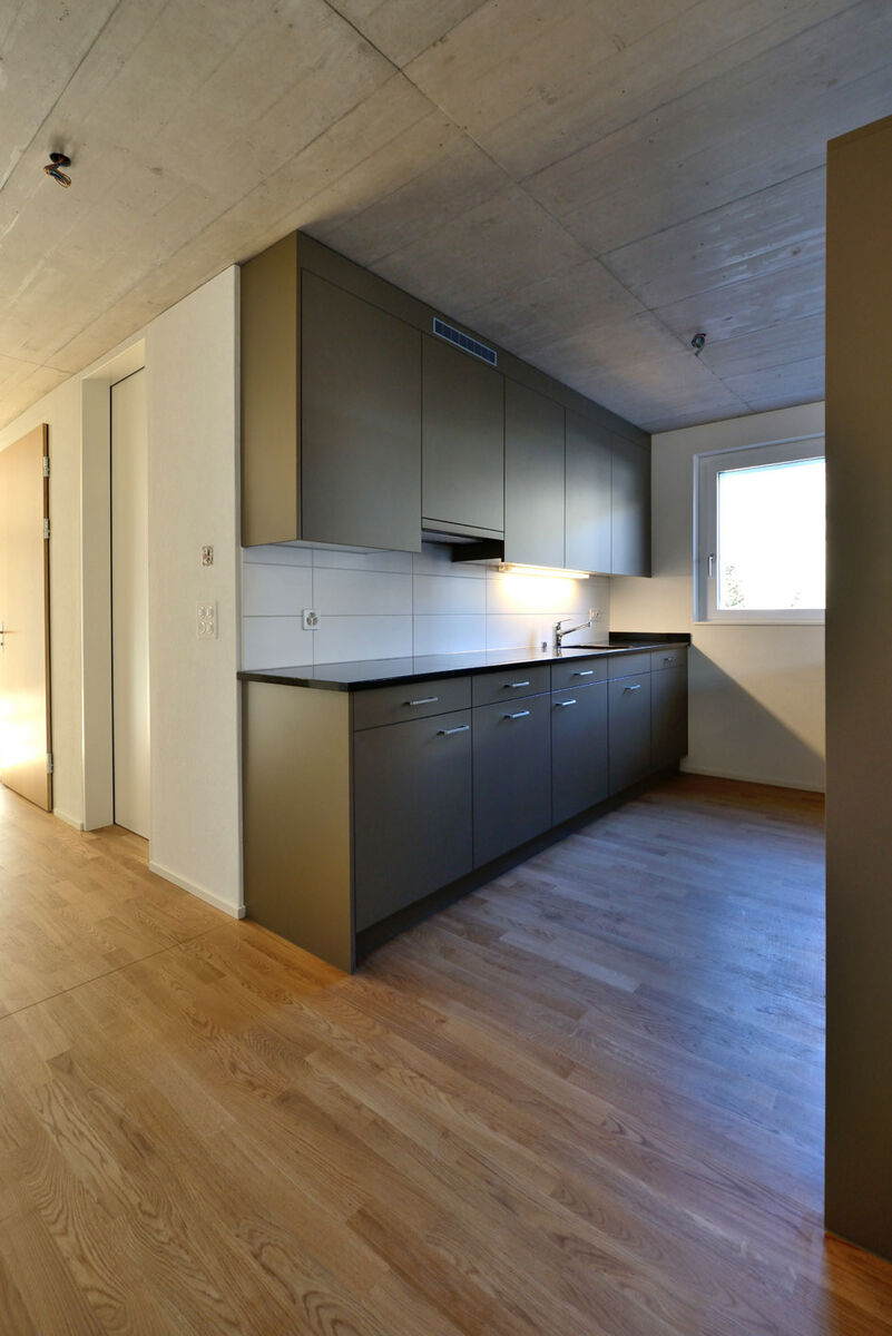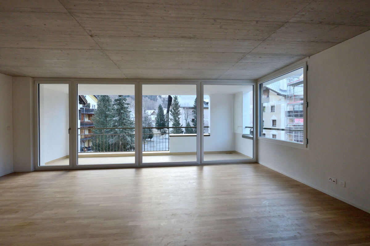 Die neuen Wohnungen sind grosszügig, lichtdurchflutet und zur Sonne und Berglandschaft hin ausgerichtet. Die nach Minergiestandard realisierte Überbauung wird über einen gemeinsamen Platz erschlossen. Durch die Verschiebung der drei Hausvolumen entstehen unterschiedlich spannende und lauschige Aussenräume. Unterhalb der Aussenräume und des Erdgeschosses befinden sich die Autoeinstellplätze sowie grosszügige Nebenräume, welche direkt mit den Wohnungen verbunden sind.